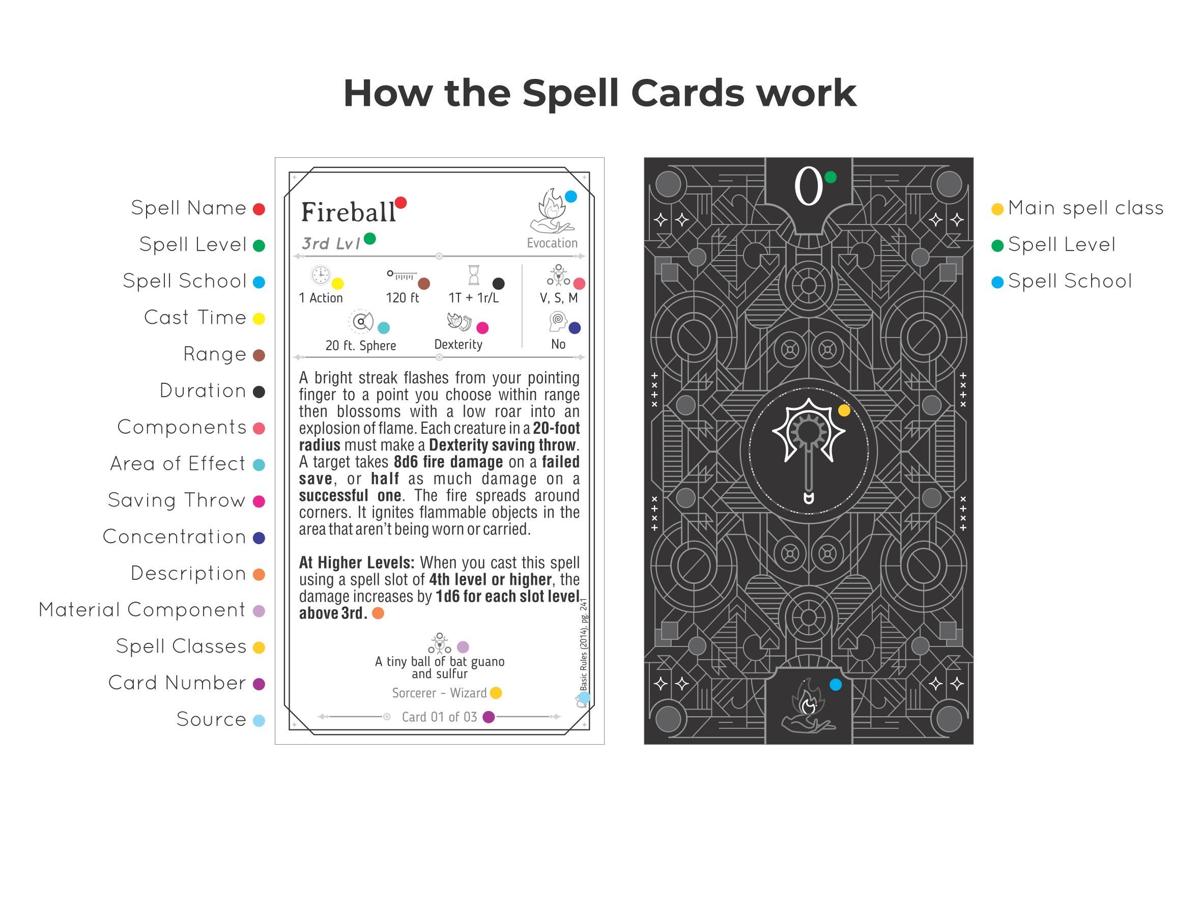 - Two versions, one tailored for longer spells that can be used to split long spells between multiple cards and one tailored for shorter spells that would only use 1 card.