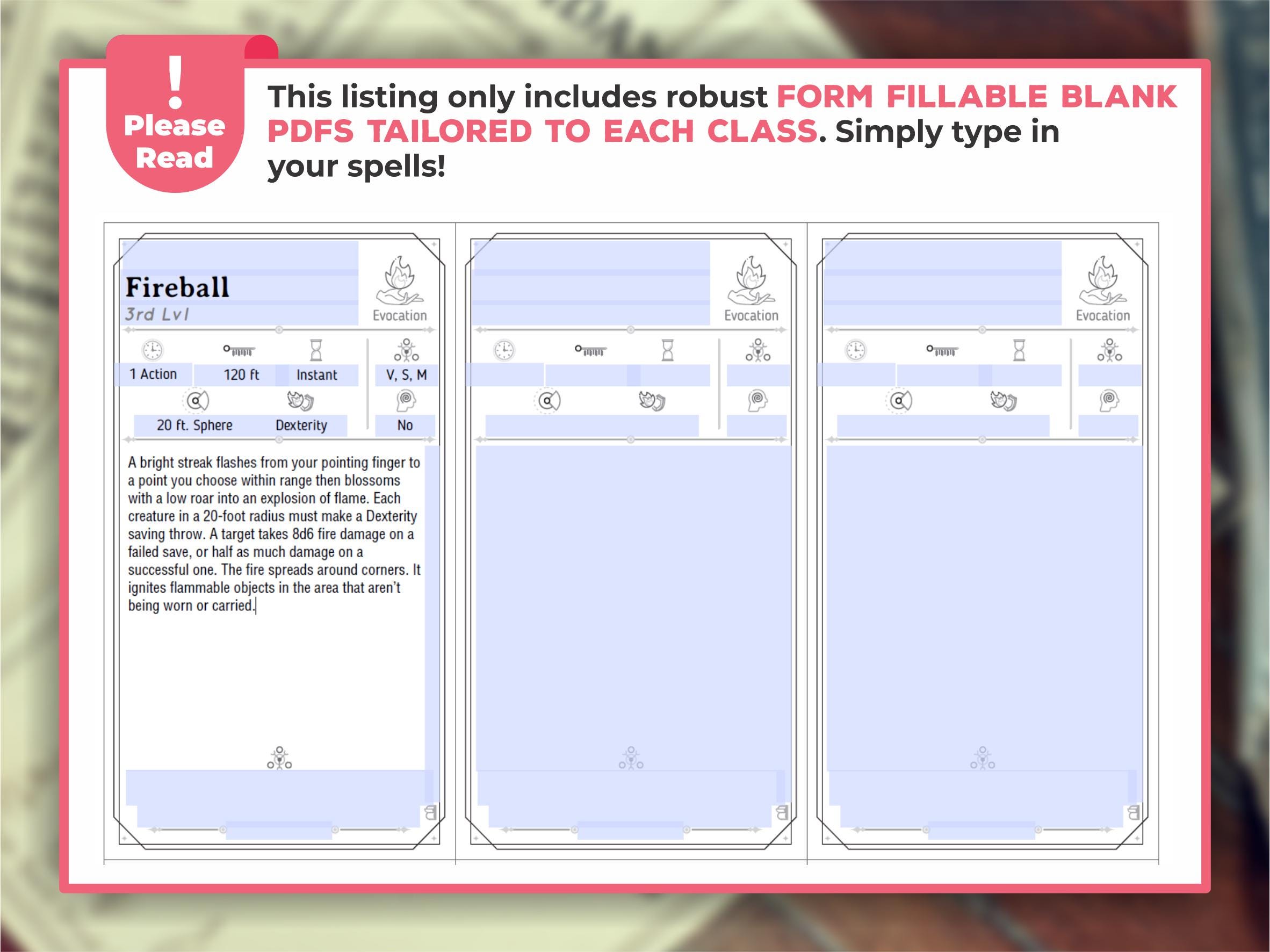 I've made the form fillable pdfs easier to edit for you in acrobat reader! Now you are able to change the font size, formatting and bold the spell descriptions if you'd like so they'll match perfectly with the spell cards I've pre-filled for you 😊 simply click on the form fillable box and press the edit button (Ctrl+E).